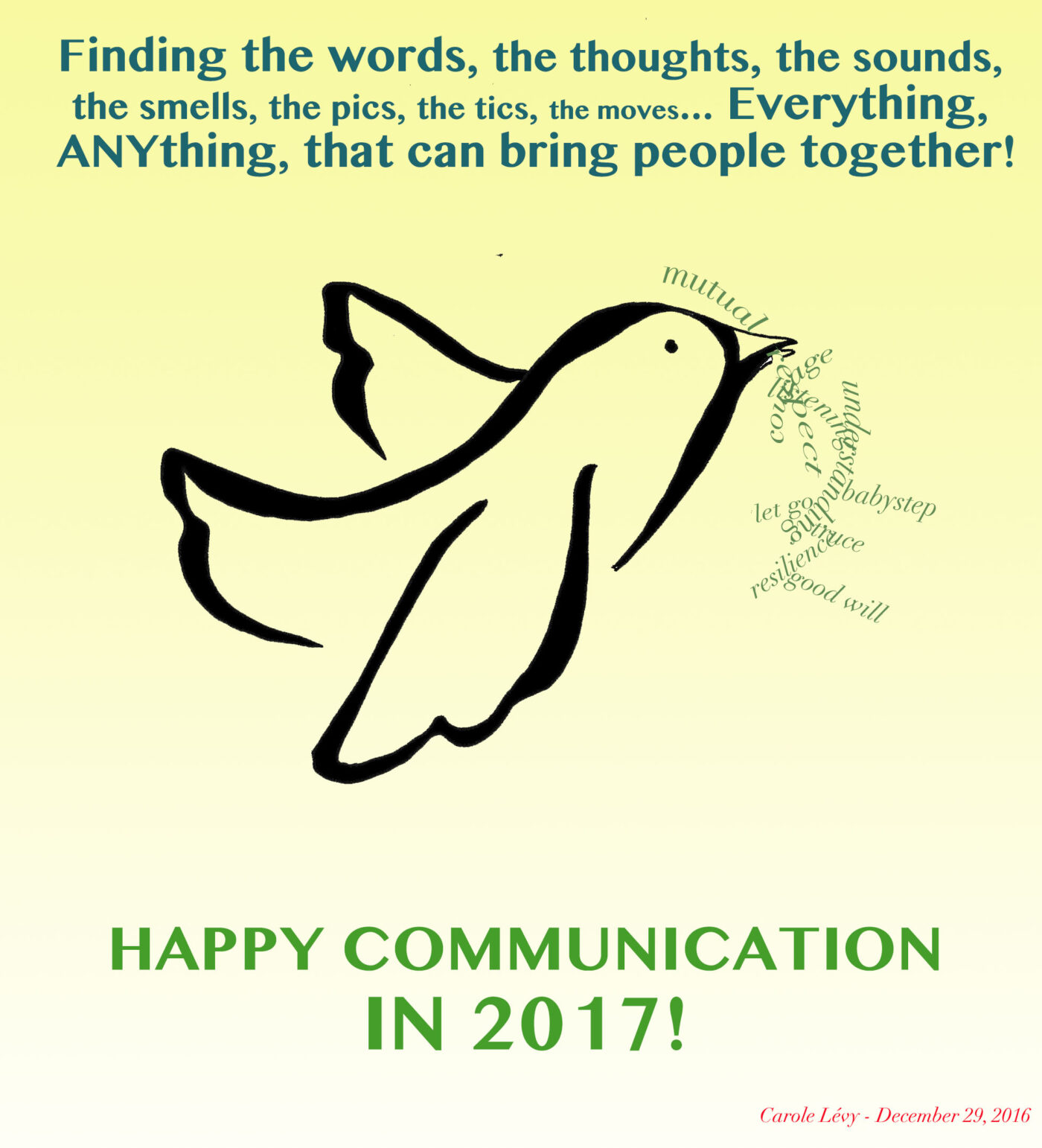 There will never be too much of conscious, centered and timely communication on earth. In 2017, let’s continue the work, but do even better!